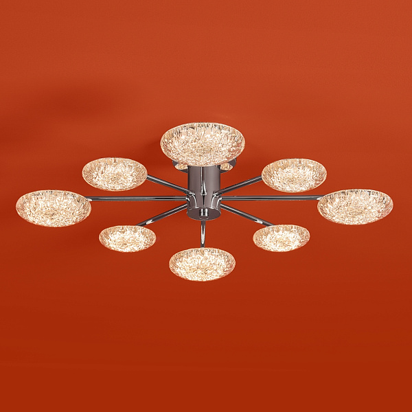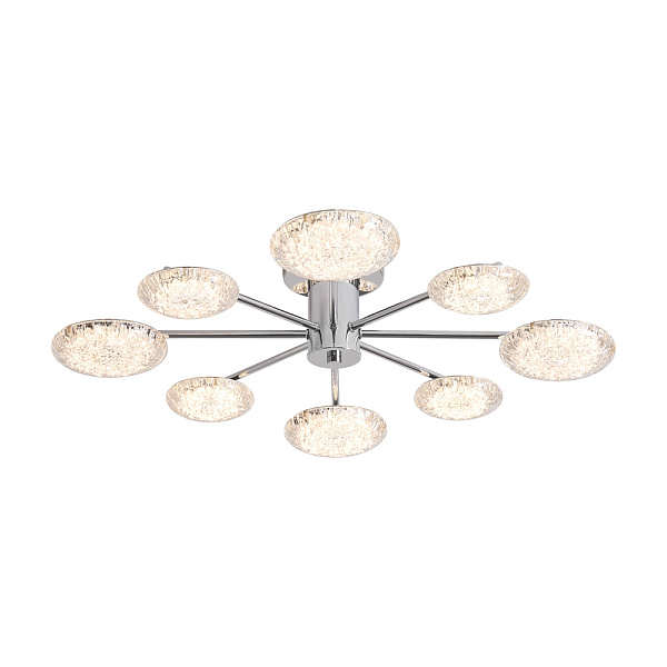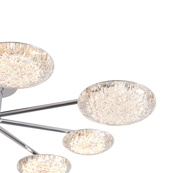 В потолочных светильниках Plane реальность переплетается с фантазией. Внутри полукруглых акриловых плафонов застыли прозрачные пузыри, создающие завораживающий оптический эффект. LED-источник света с теплой цветовой температурой 2700К наполняет эти воздушные сферы мягким сиянием, превращая каждый плафон в отдельный источник света. Хромированная металлическая арматура отражает свет, усиливая футуристическое звучание дизайна. Plane создает иллюзию дополнительного пространства даже в помещениях с невысокими потолками благодаря плоской форме плафонов и игре отражений. Этот светильник становится своеобразным арт-объектом. В современных интерьерах Plane раскрывается как днем, привлекая внимание необычной фактурой, так и вечером, создавая особую атмосферу, которая наполняет пространство мягким светом и воздушными бликами.
